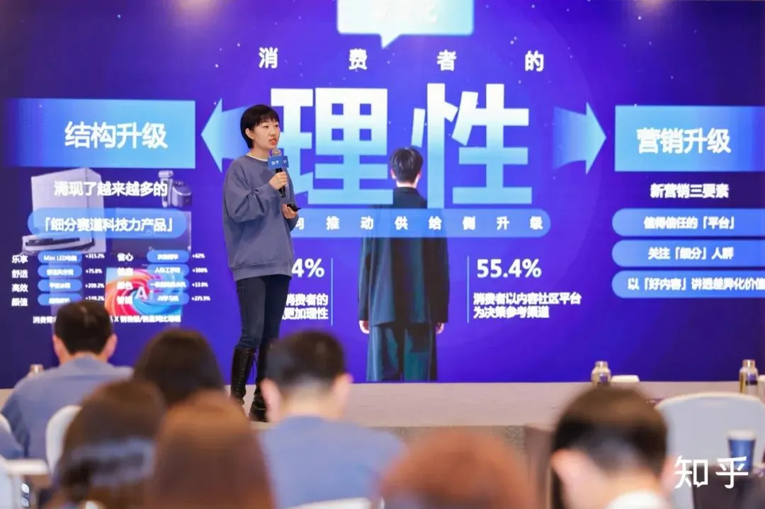 接着,知乎CCS运营负责人孙平跃分享了知乎的结构优化与营销策略升级,强调从消费者的理性角度出发进行内容差异化,深入挖掘不同用户群体的需求,通过高质量内容促进用户的决策。