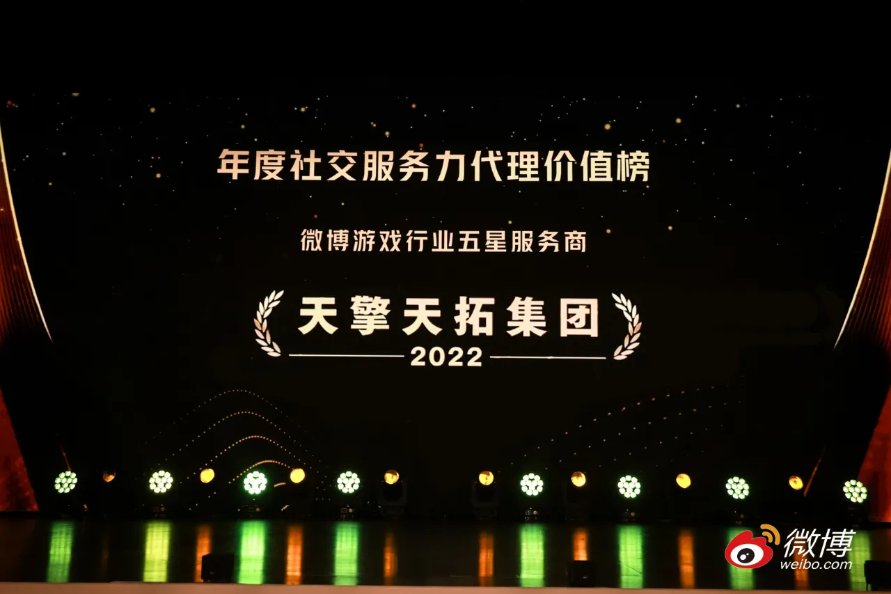 会上,凭借在游戏行业出色的服务表现,天擎天拓集团被授予“微博游戏行业五星服务商”。