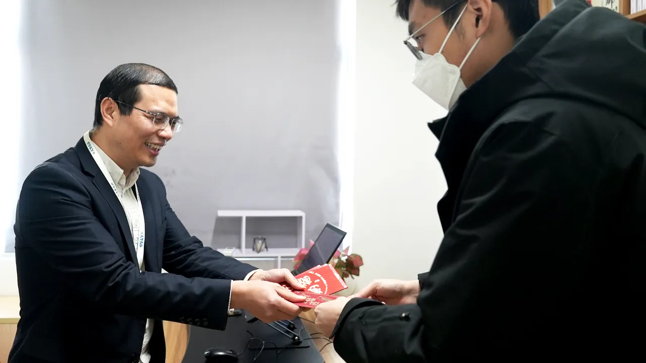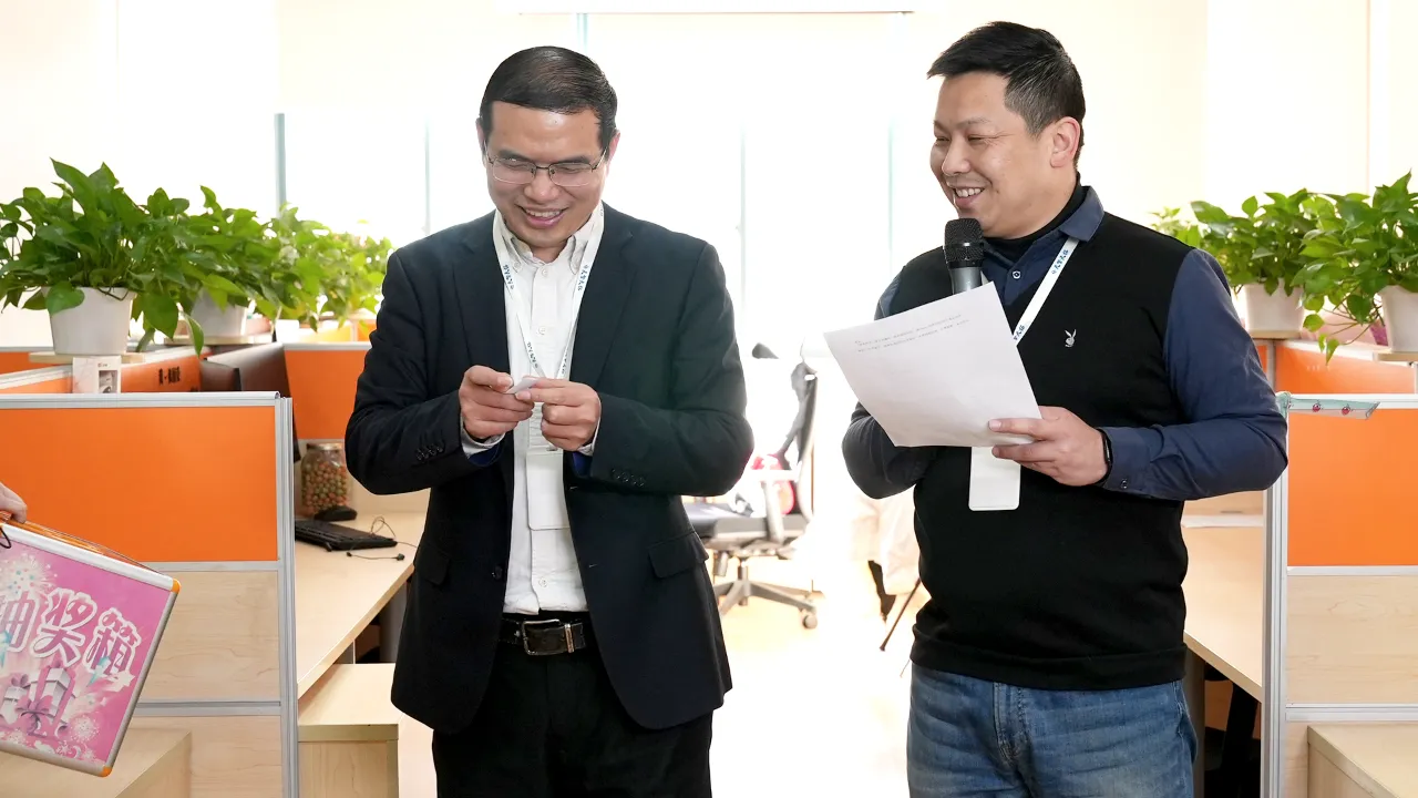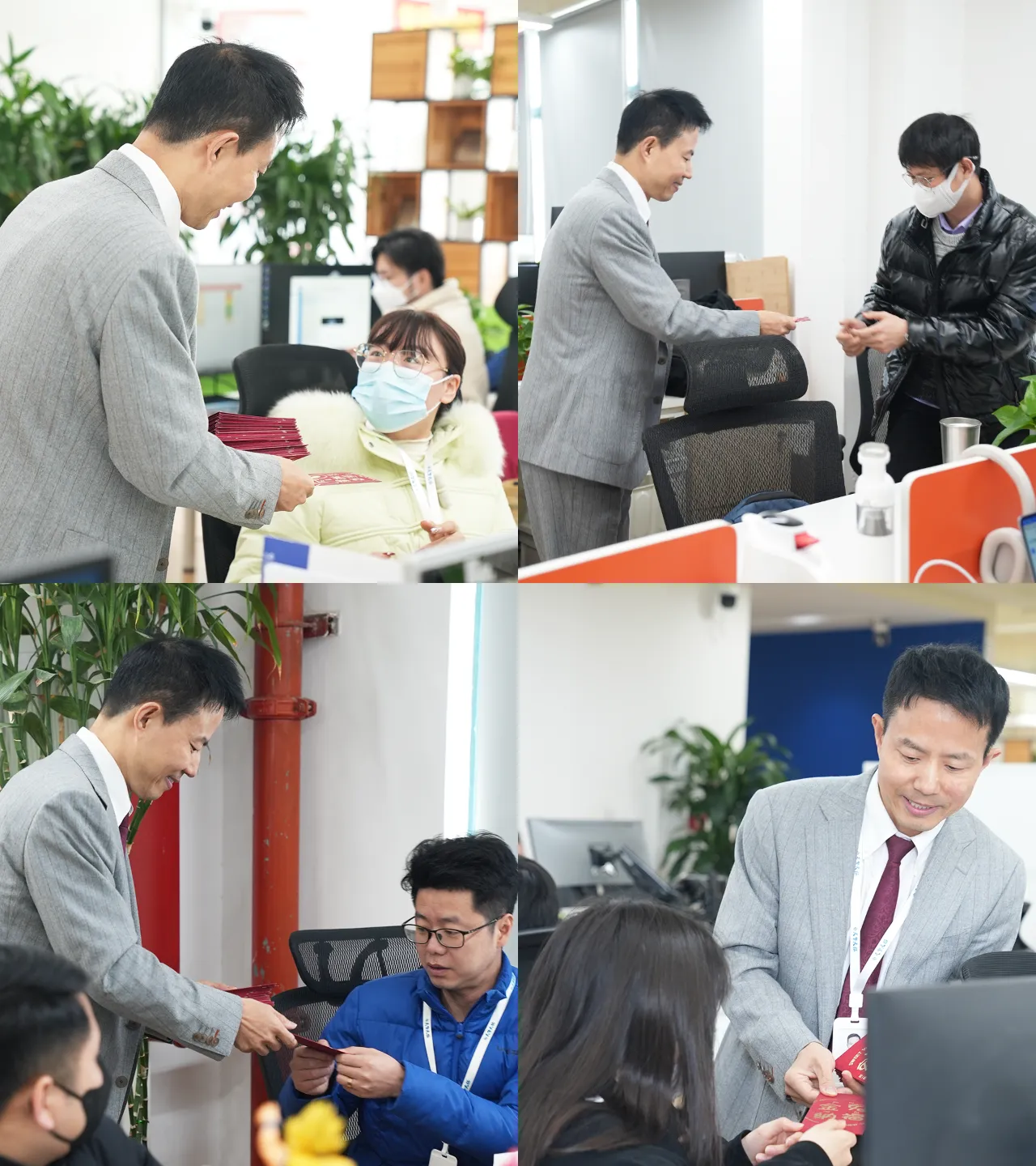 当大家还沉浸在上一波红包雨中意犹未尽的时候,Steven又来到每一位小伙伴的工位上,给大家送上红包及祝福。大家一起喜气洋洋“开工了”!