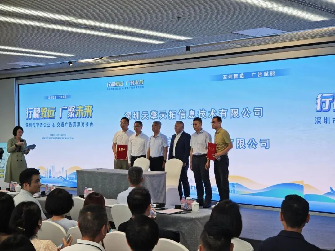 9月28日下午,由深圳市市场监督管理局主办、深圳市市场监管局福田监管局和深圳市广告协会承办的“深圳智造 广告赋能”系列活动专场——“行稳致远·广聚未来”深圳市智造企业暨交通广告资源对接会在福田区深业上城·城市云客厅举行。作为专业的互联网广告服务商,天擎天拓参与本次活动并现场签约意向企业。