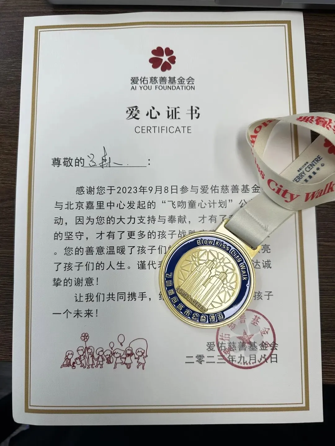 9月8日,活动从北京嘉里中心启动,徒步路线中设有5个公益打卡点,每到一个打卡点并完成指定的步数,即可参与公益任务挑战。我们北京团队的几位小伙伴在活动中成功完成了任务,并获得了专属爱心证书。