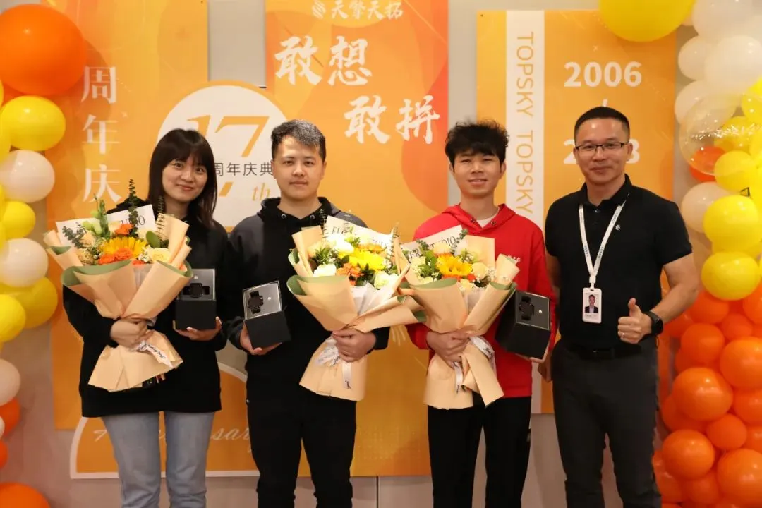 三年,五年,八年,...,十七年,天擎天拓也是这么一路成长起来的。同时,天擎天拓也见证着每一位小伙伴的成长。而在此刻,我们要向周年之星们送上最诚挚的祝福,天擎天拓能够走到今天,离不开你们的坚守与付出。
