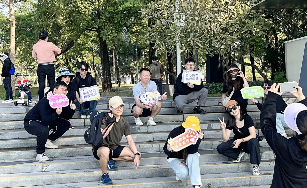 活动以各公司的各个事业部为小组行进。徒步过程中,每个小组在特定地点合照打卡,并参与团队游戏。按要求完成既定任务后,在终点汇合。