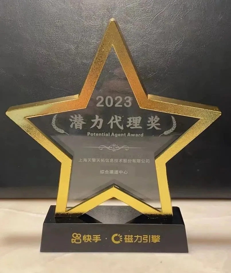 获得快手效果渠道“2023潜力代理奖”,充分体现了天擎天拓在短视频平台的营销能力。在此,我们要感谢所有客户的信任和支持,也感谢团队所有伙伴的不懈努力!