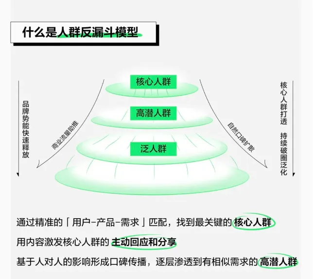 小红书的营销逻辑基于“人群反漏斗”模型,即找到需求与产品卖点比较匹配的核心人群,在其中形成口碑,再向外延伸至具有相关性的人群,从而实现品牌影响力的渗透。