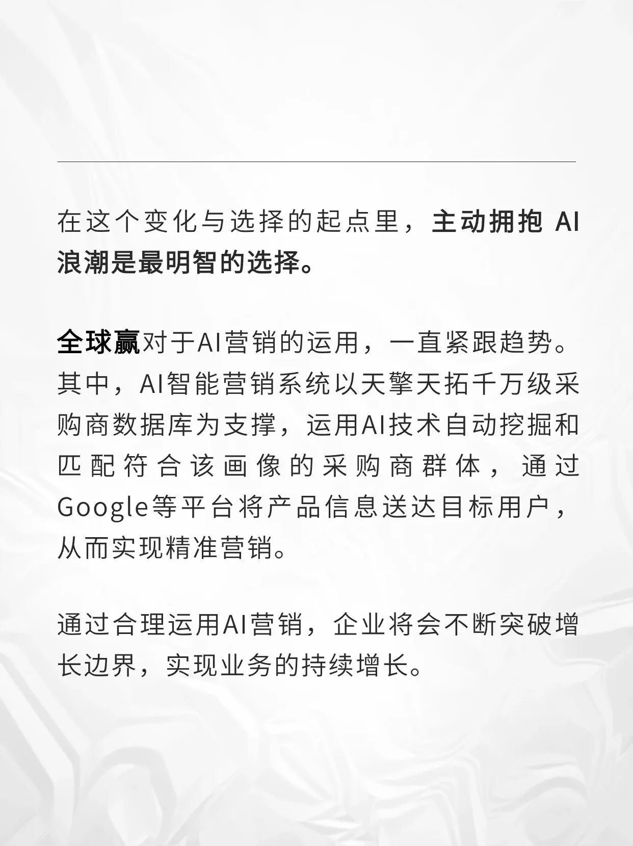 通过AI,营销人员可以更精准地了解目标受众的需求和行为,从而制定更加个性化和有效的营销策略。