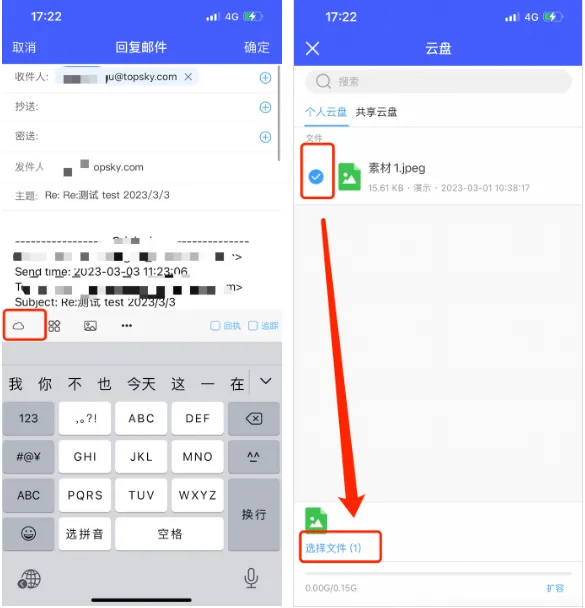 示例:云盘文件可同步保存于PC与APP端,随时响应工作信息。