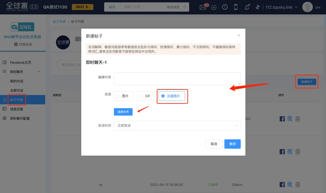 示例:跨平台访问,一键选取云盘的内容到Facebook主页。