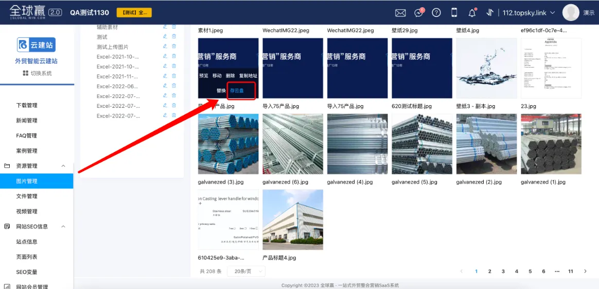 示例:上传网站的图片可操作转存备份到云盘(个人或共享)。