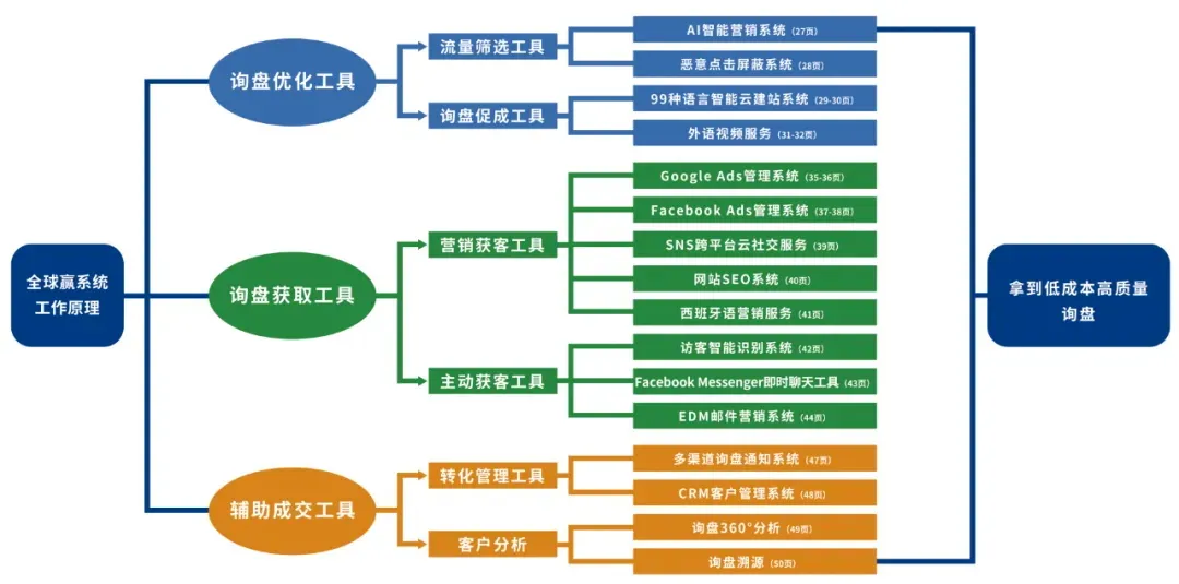 该系统以AI大数据技术为基础,创新性研发了“流量优化工具”、“询盘获取工具”、“辅助成交工具”三大类型工具包,旨在帮助出口企业获取低成本且高质量的询盘,助力中国出口企业快速出海,打造全球化品牌。迄今,已累计服务出口企业超过20,000家。