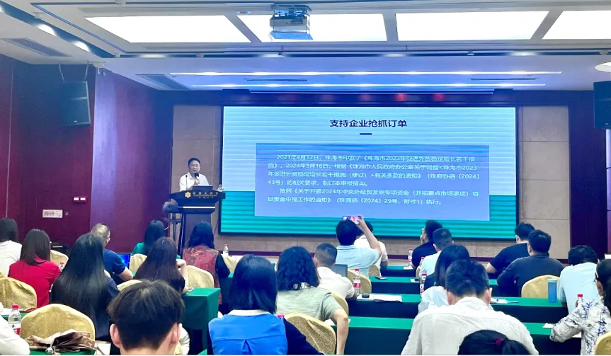 会上,珠海市商务局贸易促进科副科长全迪详细讲解了《珠海市2023年促进外贸稳定增长若干措施(修订)申报指南》,明确了四个方面稳外贸支持事项等内容,鼓励符合条件的企业积极申报,把握政策红利,为外贸稳定增长注入强劲动力。