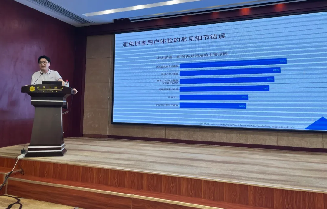 随后,天擎天拓和Google团队的主讲嘉宾向与会代表们分享了外贸营销领域的见解和经验,为企业数字化转型提供助力。天擎天拓高级商务顾问Yuna对“建造营销型独立站”进行了分享,详细剖析了如何选择以及打造合适的独立站,从而实现精准获客。天擎天拓全球赢高级经理Wade则介绍了天擎天拓推出的一站式营销解决方案“全球赢”,专为中国出口企业量身打造,为企业建设营销型独立站提供强大支持。