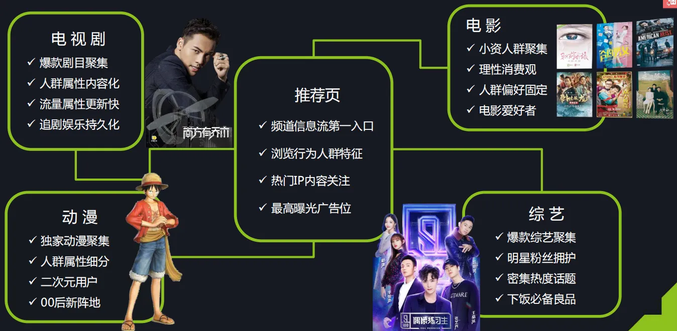 广告优势(这里主要讲电视剧、电影、动漫、综艺四个频道的广告优势和展现位置,其他频道信息流广告类似):