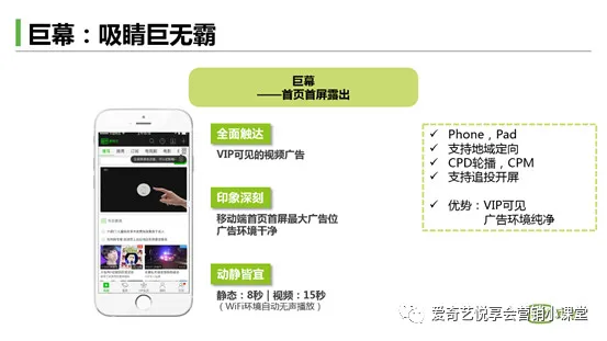 使用场景:如广告主想要用视频广告影响VIP人群,需宣传新品或活动,推荐投放巨幕广告。