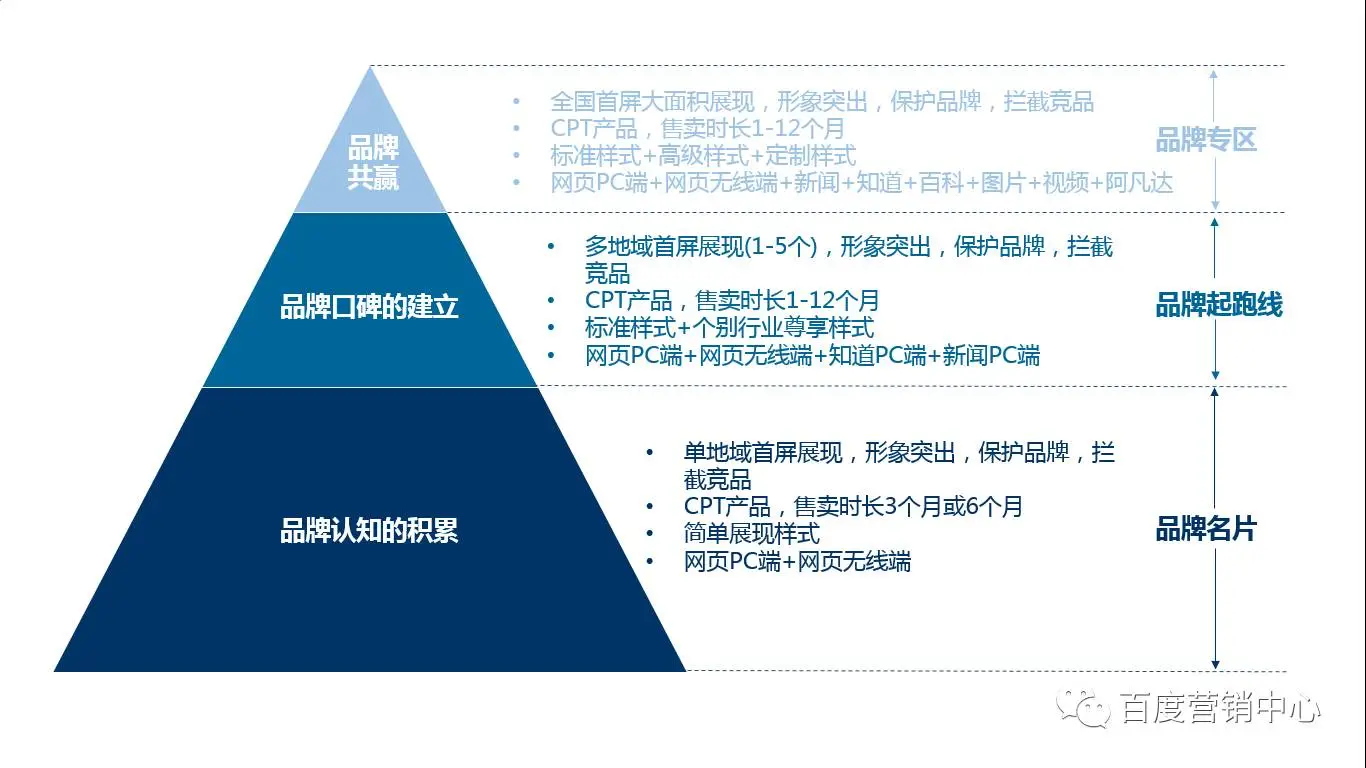百度希望客户能够认识到品牌推广最重要的目标或者最重要的意义,就是降低客户对于流量的依赖,也就意味着如果你感觉百度搜索投放成本越来越高,获取用户越来越困难,就要想想是不是品牌建设方面出了问题。