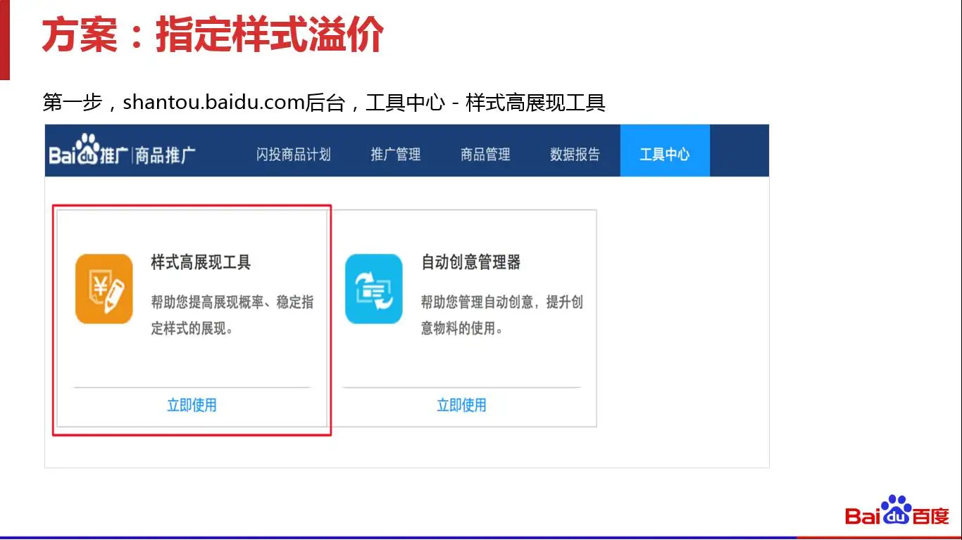 闪投的样式是根据网友搜索体验智能展现的,如果希望能够增大展现几率,可以通过“样式高展工具”。