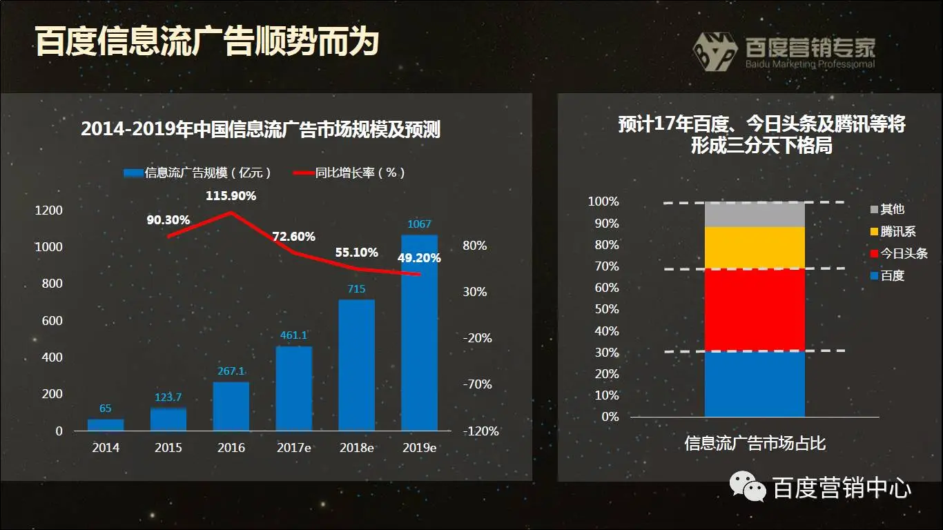 以上就是中国信息流广告市场的基本情况和百度信息流广告的基本现状,接下来了解一下什么是百度信息流广告。