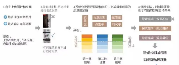 创意管理:智能把关创意质量,劣质创意自动关闭,有效延长广告计划生命周期。