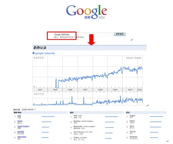 通过 Google 趋势,您可以比较全世界对您所喜爱主题的关注度。输入最多五个主题,然后查看它们随着时间推移在 Google 上被搜索的频率。Google 趋势还可显示您的主题在 Google 资讯报道中出现的频率,以及最经常搜索它们的地理区域。Google 趋势会分析一部分 Google 网络搜索以计算您输入的字词被搜索的次数,并将其与 Google 上随时间推移的搜索总量相比较。然后我们会用图表向您显示结果,即按线性比例绘制的搜索量图表。