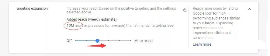 在这个工具会根据我们的定位设置,来寻找更多谷歌认为符合我们定位方式的目标人群,从而提高点击和转化。