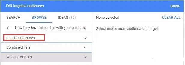 这类定向的关键在于数据源:需要有之前与你网站发生交互的数据,这样谷歌才能了解你的目标用户。