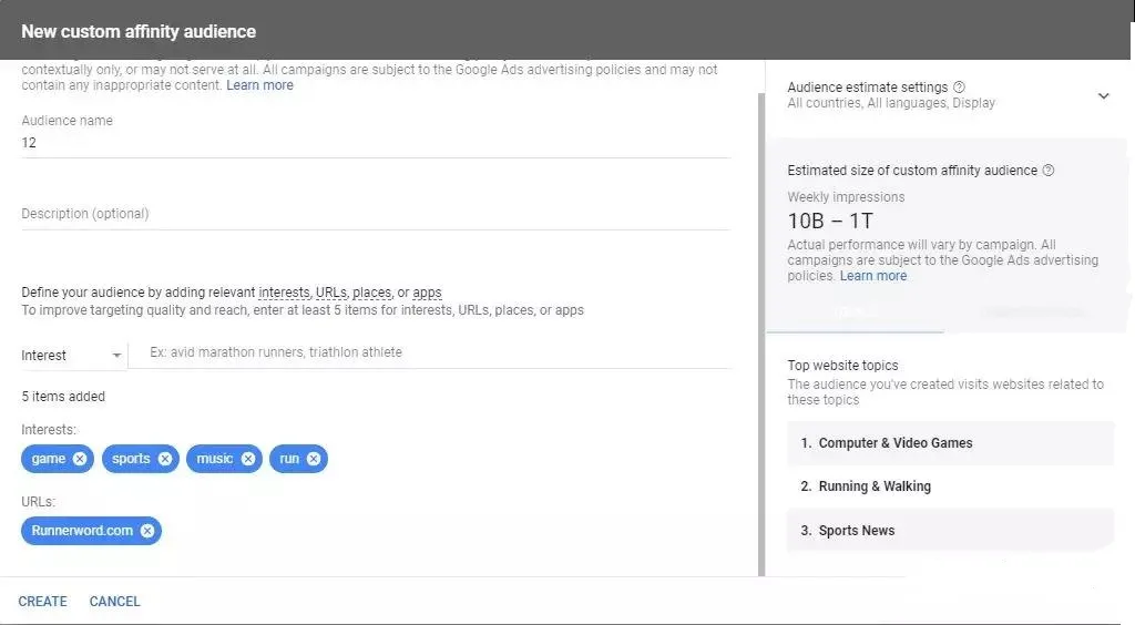 2.1.1 人群的兴趣或习惯( Affinity Audience + Custom Affinity )