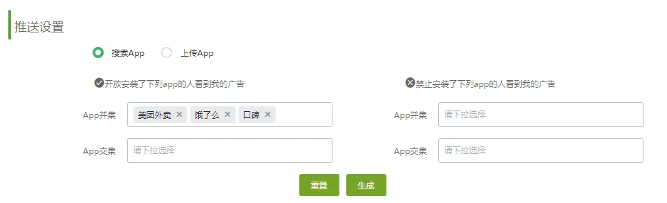 平台支持广告主生成安装了某个/某类的APP用户的人群包。
