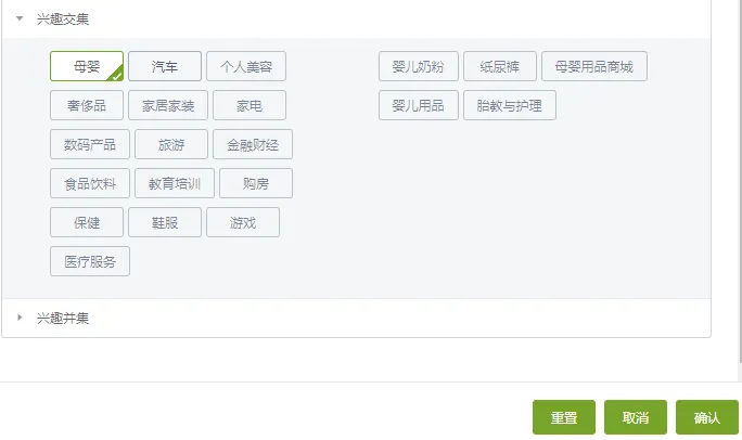 平台开放近100个预设的一、二级商业兴趣供广告主选择。