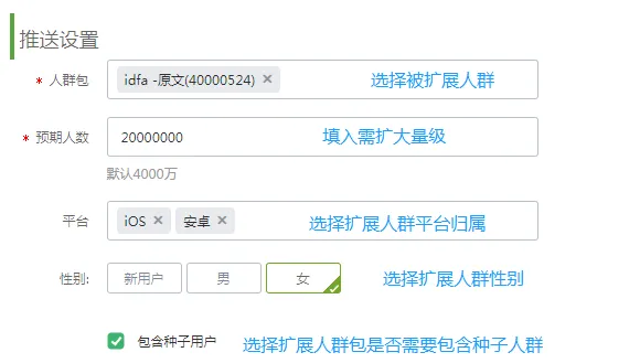 只需在“预期人数”中输入数值,系统就会将人群包拓展放大到指定量级,满足品牌规模化精准和拉新需求。