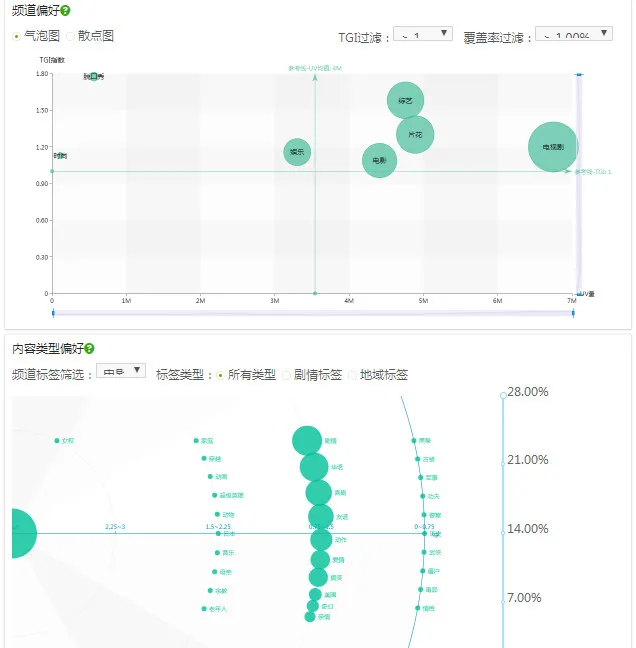 生成人群包后还可通过人群画像模块进行人群包分析,支持对已生成的人群包进行分析,提供人口属性分析,观影偏好分析,独家三观分析。