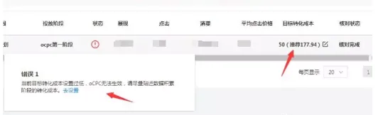 建议前期设置的目标转化成本不低于系统推荐的80%,待后期稳定后在适当调整目标转化成本。