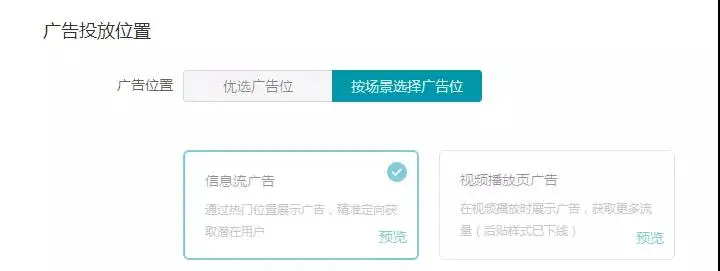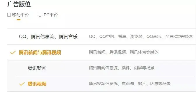 3.腾讯的视频信息流 展现形式也是横版、竖版,流量位置有腾讯新闻信息流、腾讯新闻文章底部及微信插件、腾讯新闻闪屏、腾讯视频信息流、腾讯视频首页专栏、腾讯视频闪屏、腾讯视频前贴,比较丰富多彩,界面如下。