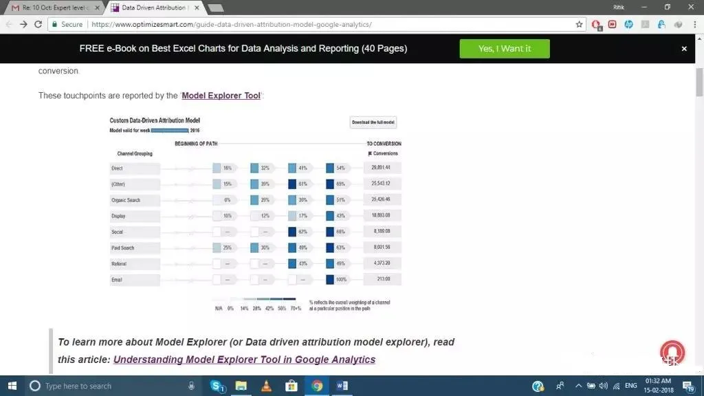 使用数据驱动的归因模型来分析非转化和转化路径信息。前者的数据是从转换的网站收集的,而后者的数据是从未被用户的网站转换的访问者收集的。此外,数据驱动归因模型的一个独特之处是它每周都会改变。