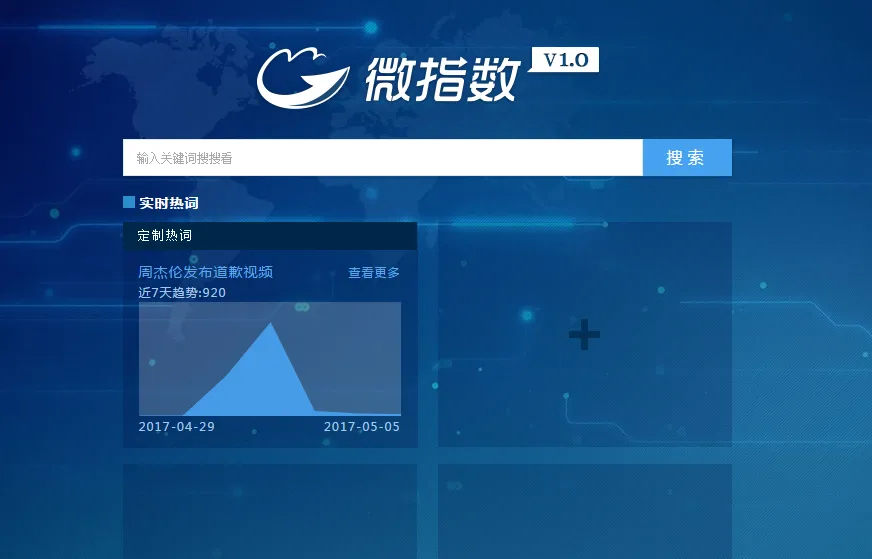 首先使用搜索工具,搜索“微博指数”,进入地址为:data.weibo.com的网站,该网站为微博指数的官方网站,然后你就会看到如下的页面: