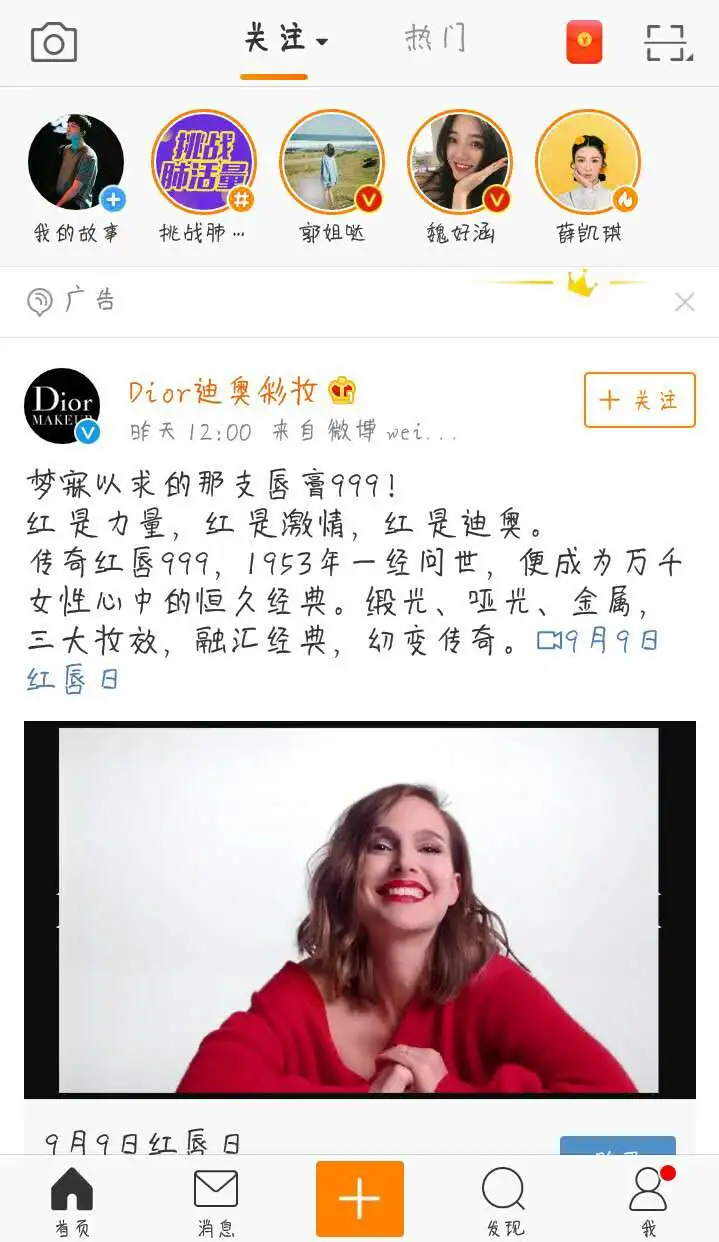 彩妆类广告一直以来都是比较受欢迎的一种广告,微博上的彩妆广告也是非常的多。微博用户大多数都是有学历、白领类居多,对于彩妆可能要求高一点,一些奢侈品品牌最适合在微博上放置广告。
