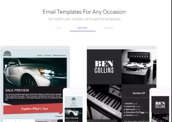 Benchmark的免费套餐允许用户向2000个用户发送14000封邮件。改套餐没有自动化和A/B测试功能。如果只是想要找一些精美的可编辑的模板,可以到这里看看。