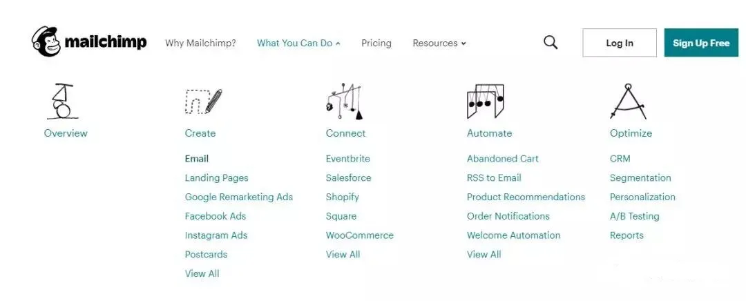 MailChimp新用户注册完全免费,并且注册过程简单,企业营销人员一般都会使用这个软件。