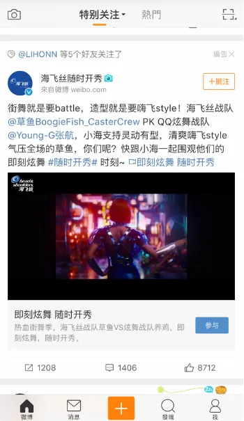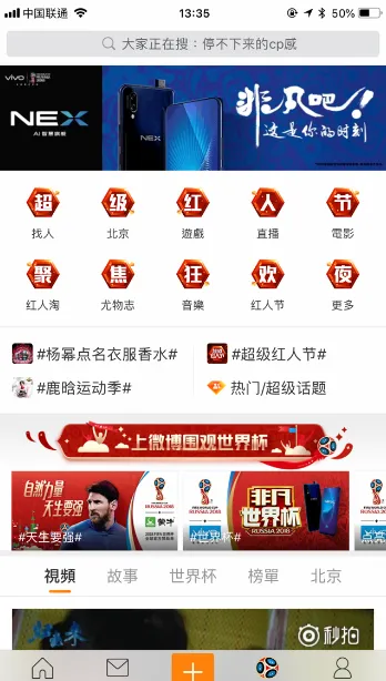 视频类广告放置在微博关注页面的最上面,以作者头像为入口进行聚合,显示在feed顶部。非常的醒目,容易引起用户的点击。视频运用的是竖屏拍摄,符合用户运用手机端浏览文章的习惯。视频更能体现出产品的特点,引发用户的兴趣,支持添加外链跳转。