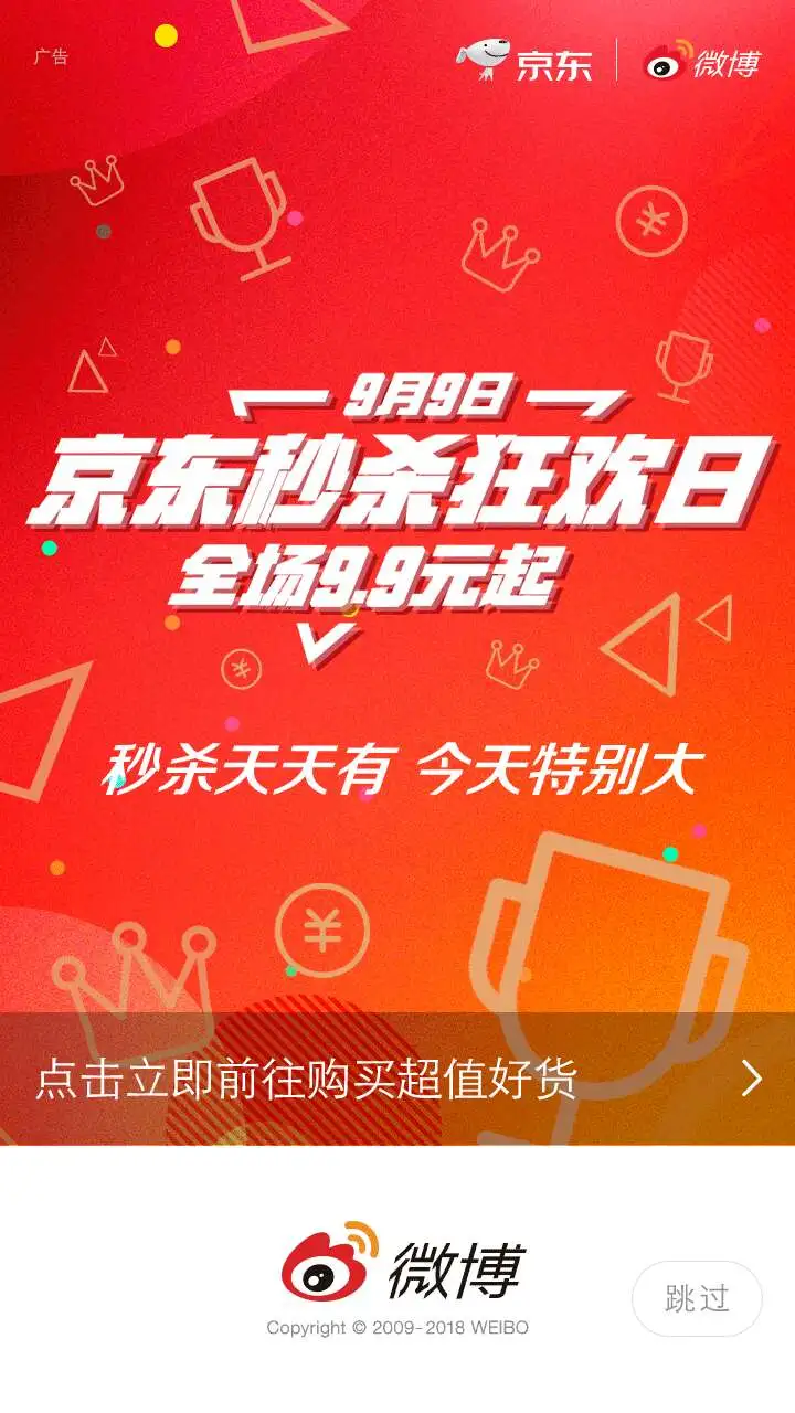 微博上的曝光类广告也就是我们常说的开屏广告,主要优势就是用户在打开APP的瞬间看到,很容易吸引用户的眼球,容易使用户记住我们的广告;另外广告是强制性推送给用户,广告到达率是100%,是每个用户打开APP必须要看到的一则广告,无法避免,非常适合品牌宣传类投放。