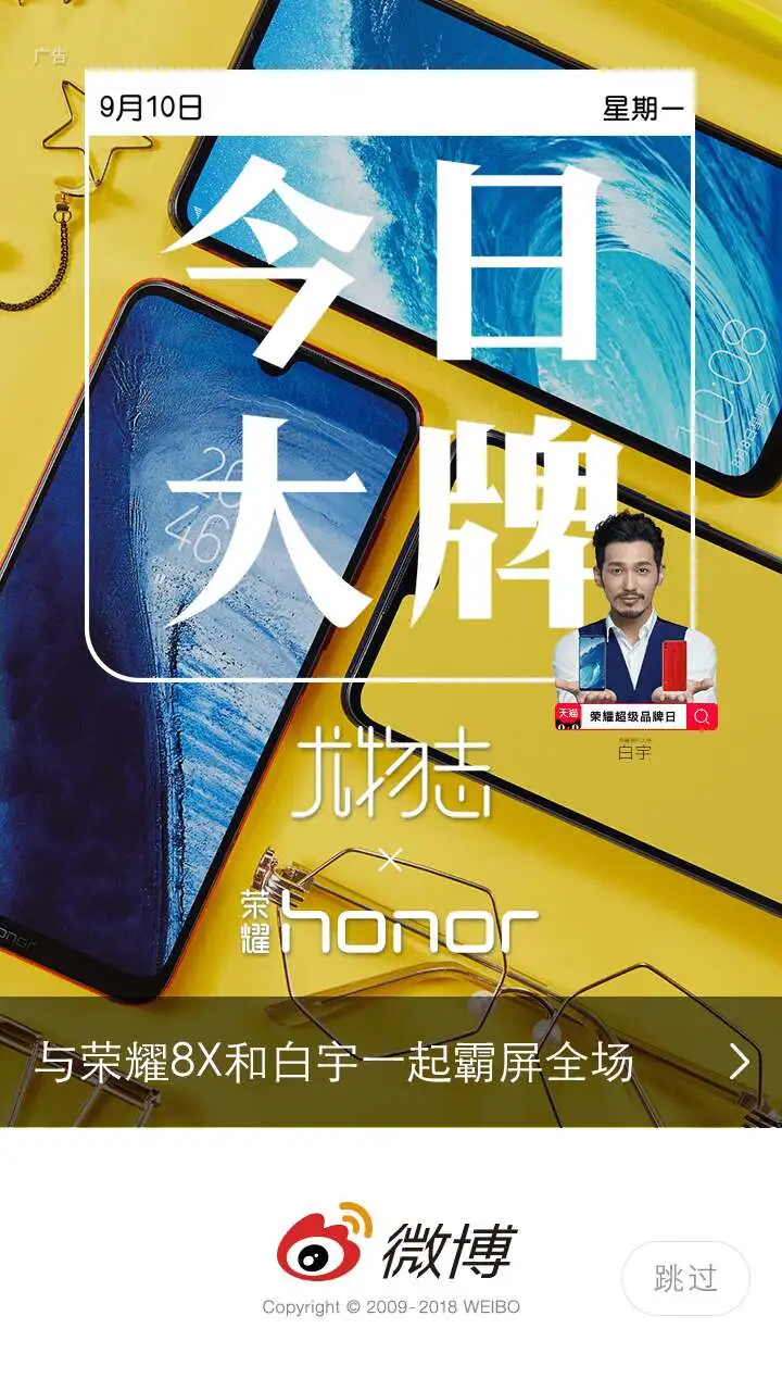 4、微博开屏广告可进行互动,点击屏幕,进入互动页面,或者是进入落地页,容易引起用户的兴趣;