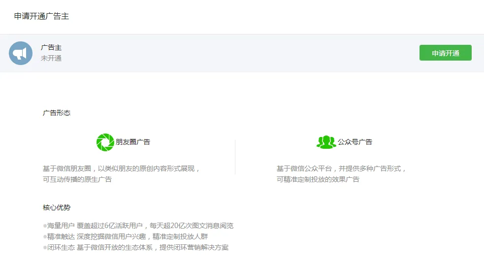 如果我们的公众号想要做好微信营销,为什么不试试微信朋友圈或微信公众号广告投放呢?相比单纯的软文营销,微信广告投放能让你的营销达到立竿见影的效果。