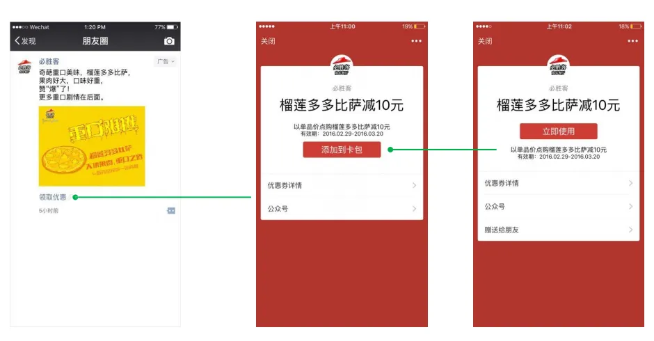 必胜客是大家所熟知的,必胜客也有做过微信卡券推广的~请各位广告主大大们一起看看必胜客是怎样做微信卡券推广的~