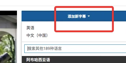 之后在视频的右边会出现“添加新字幕”的选项,点击并选择你要添加的语言: