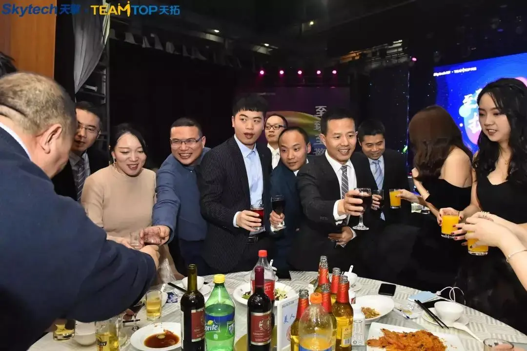 宴会开始前,天擎天拓核心管理层及各业务部总监在舞台前致敬酒词,在场所有的天擎天拓人共同举杯,致敬2018,共迎2019。